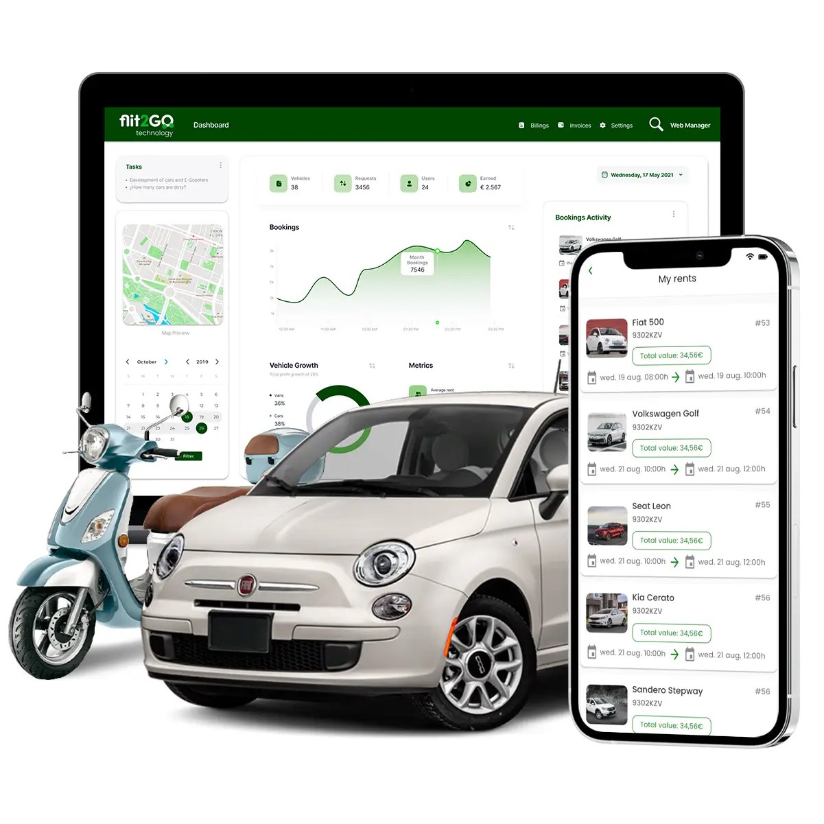 Herramientas adaptables a múltiples servicios de movilidad, gracias a flit2GO es posible expandir la flota con nuevos vehículos como: